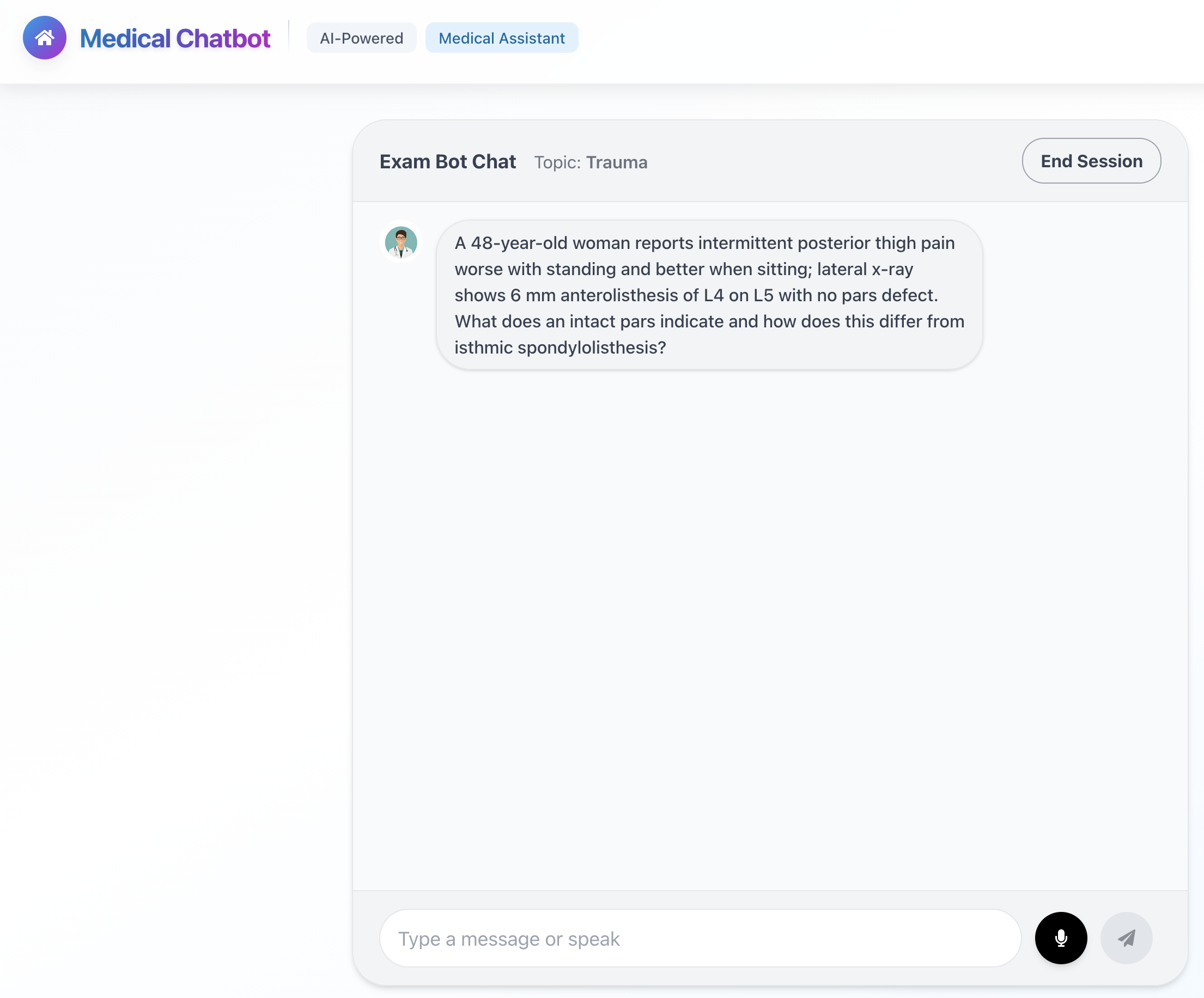 Our FRCS Orthopaedics VIVA Practice Bot is designed both to provide registrars with a powerful, accessible, and highly interactive preparation tool for the FRCS VIVA examination and for orthopaedic trainees looking to improve thier knowledge during the early training years. It's available at any time, gives useful feedback on reponses and won't judge you for big gaps in your knowledge or a dreadful anwser!